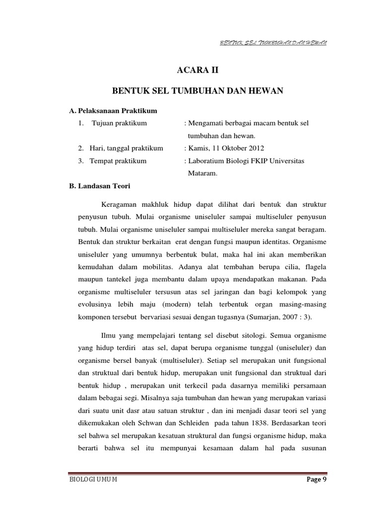 Laporan Sel Hewan Dan Sel Tumbuhan - Seputar Laporan