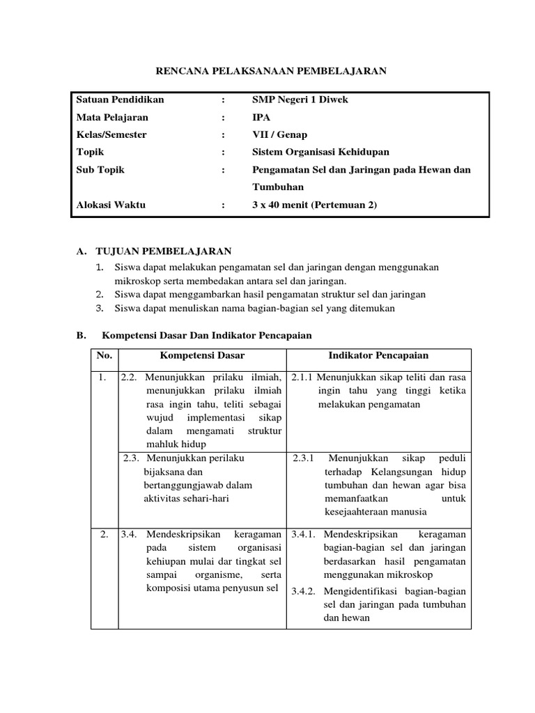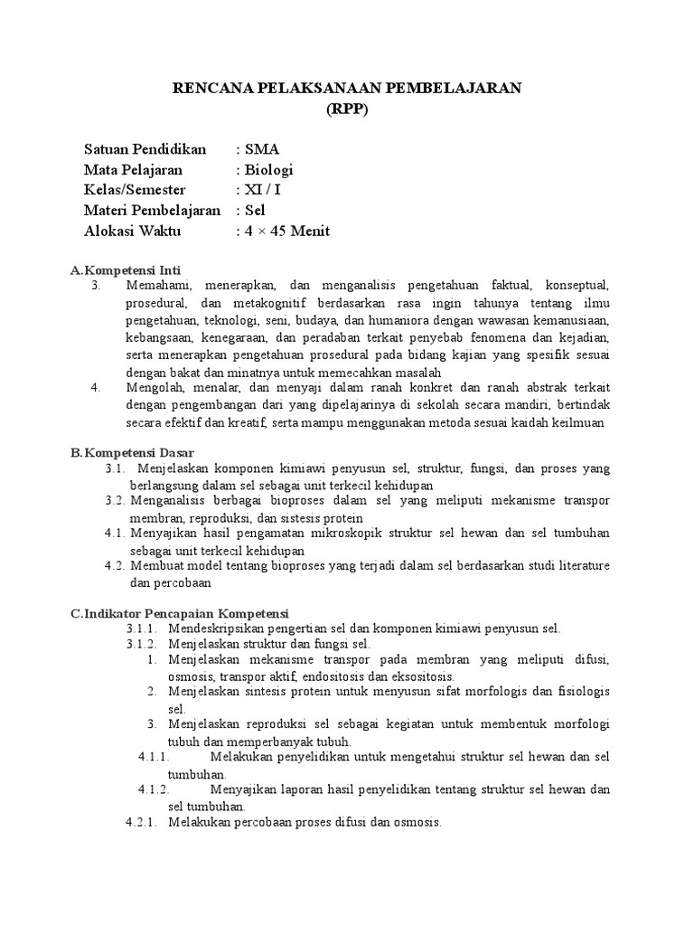 DOC) RENCANA PELAKSANAAN PEMBELAJARAN SEL PERTEMUAN 2 (DARI 4X PERTEMUAN | Nurul Rustam - Academia.edu