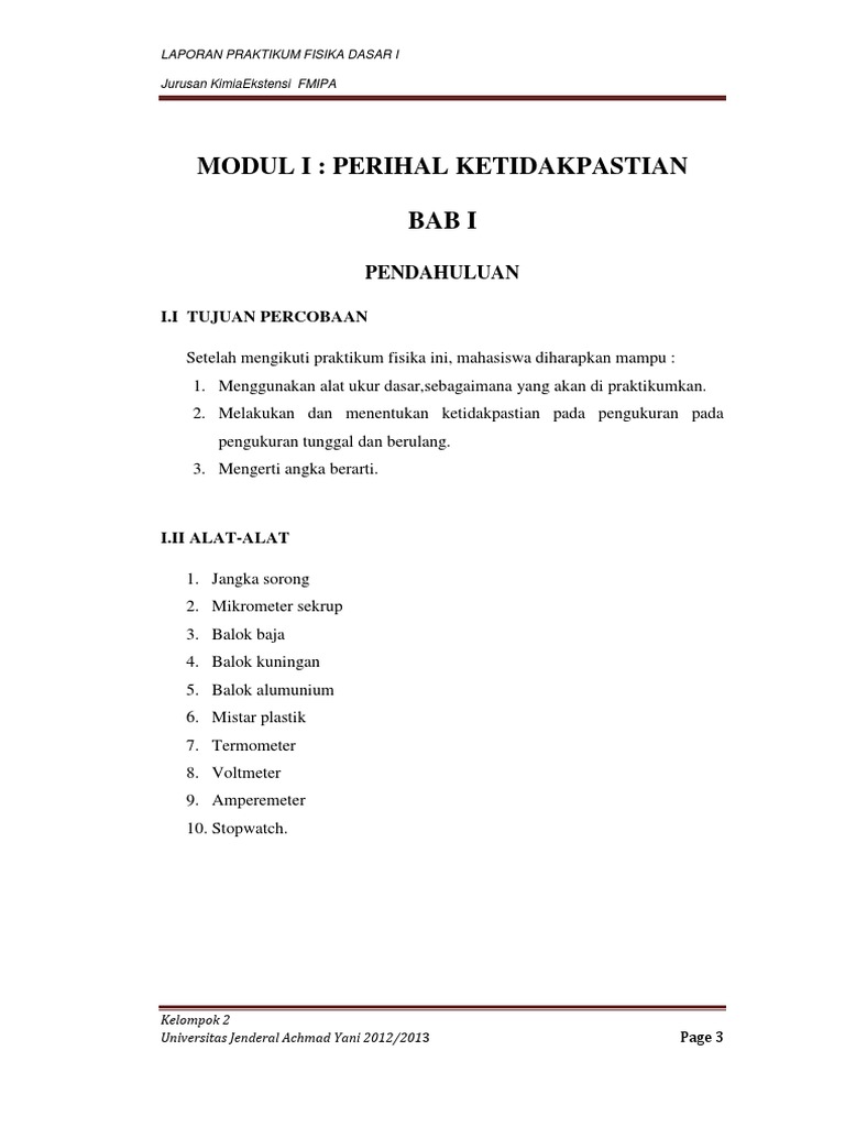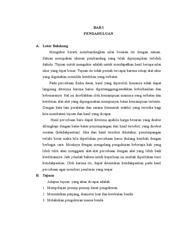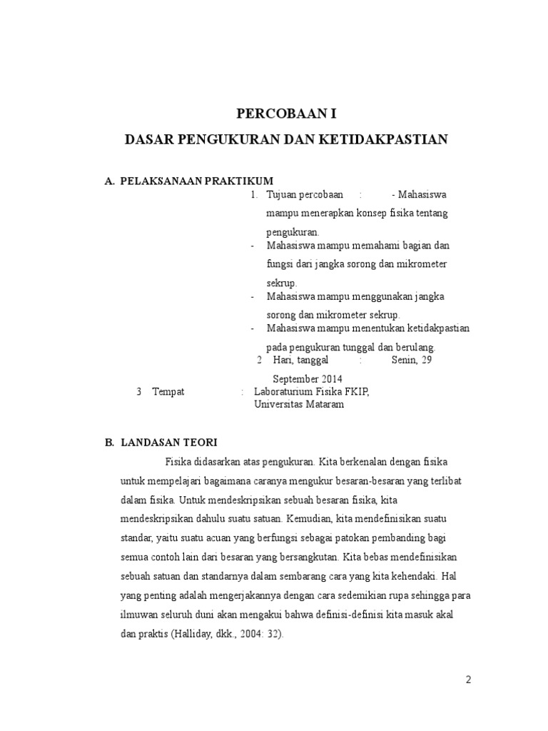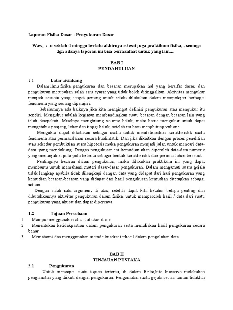 Contoh Laporan Praktikum Fisika Dasar Pengukuran Dan Kesalahan - Kumpulan Contoh Laporan