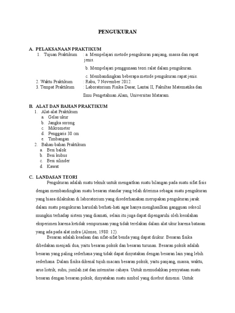 DOC) laporan praktikum fisika pengukuran benda padat | Indah Rachmadhini - Academia.edu