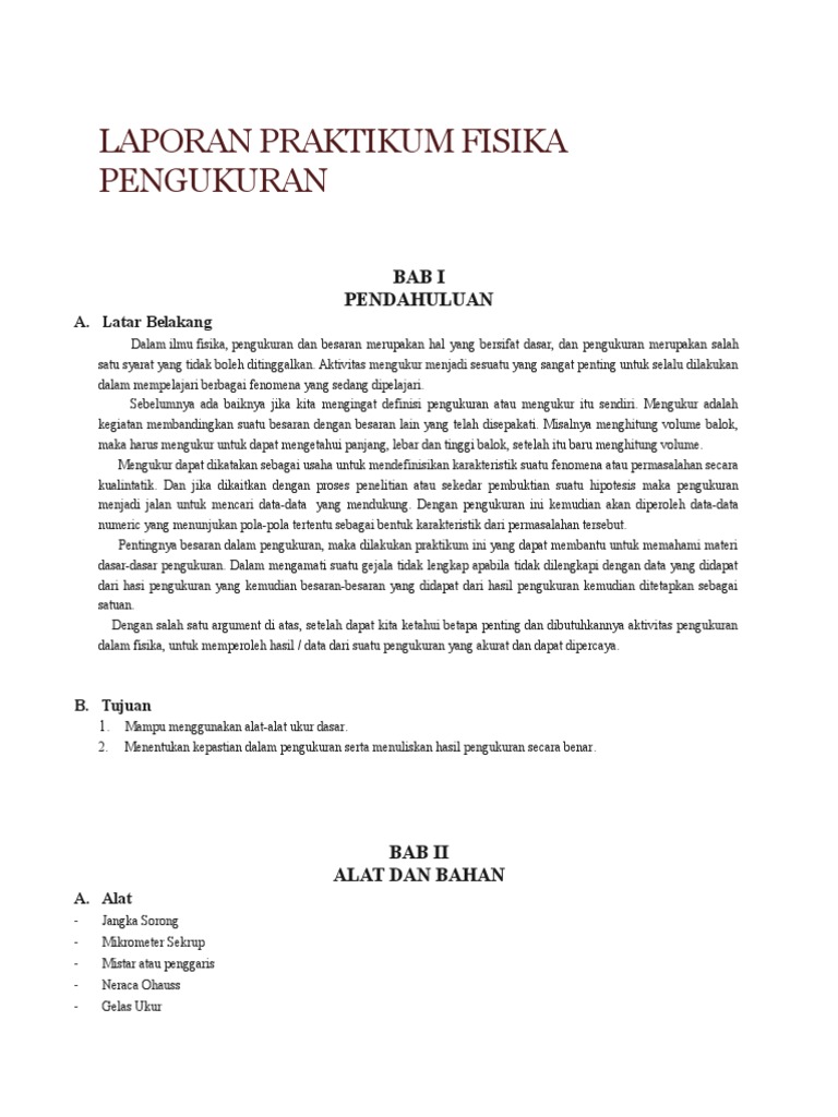 Contoh Laporan Praktikum Pengukuran Fisika ~ Valencia’s Blog