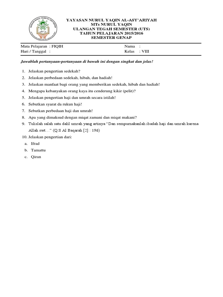 SOAL PAI KELAS 7 DAN BAHASA SUNDA KELAS 8