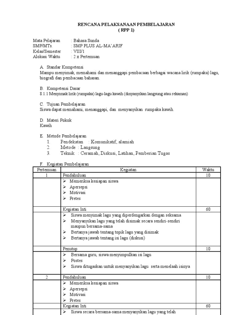 RPP Bahasa Sunda SMP Kelas VII Semester 1