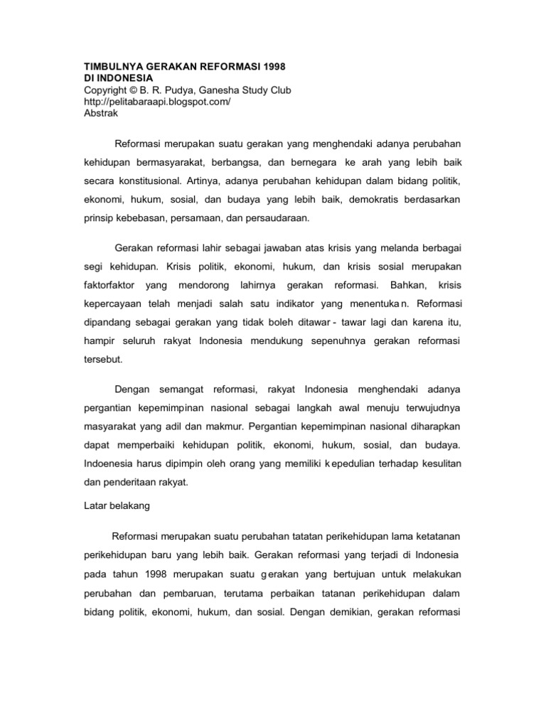 DOC) Makalah Latar Belakang Lahirnya Reformasi Indonesia | Ahmadi Otok - Academia.edu