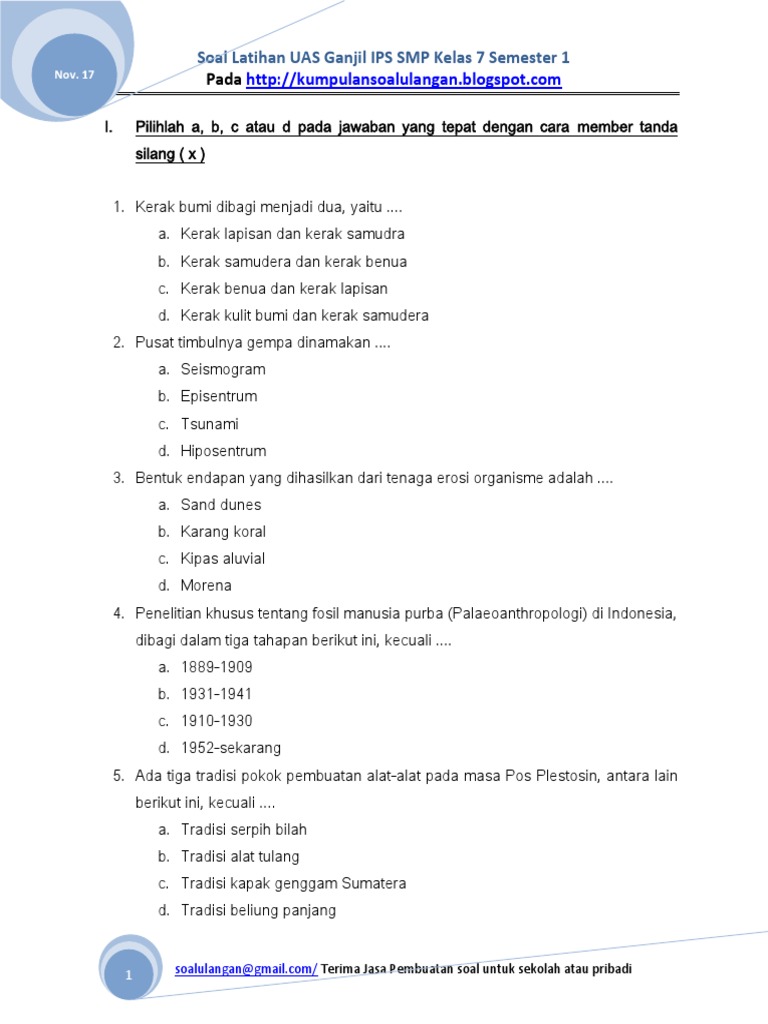 Soal Uas Ips Kelas 7 Semester 1 Dan Kunci Jawaban - TEORI DAN SOAL