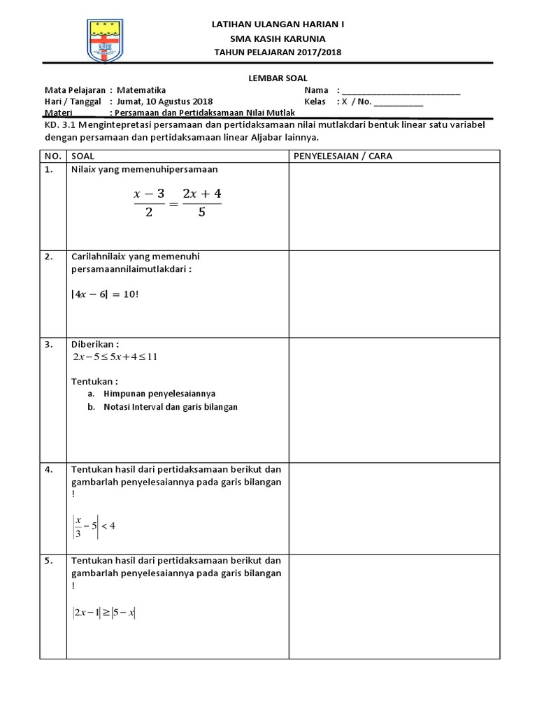 Contoh Soal Matematika Wajib Kelas 10 Nilai Mutlak - LatihSiswa