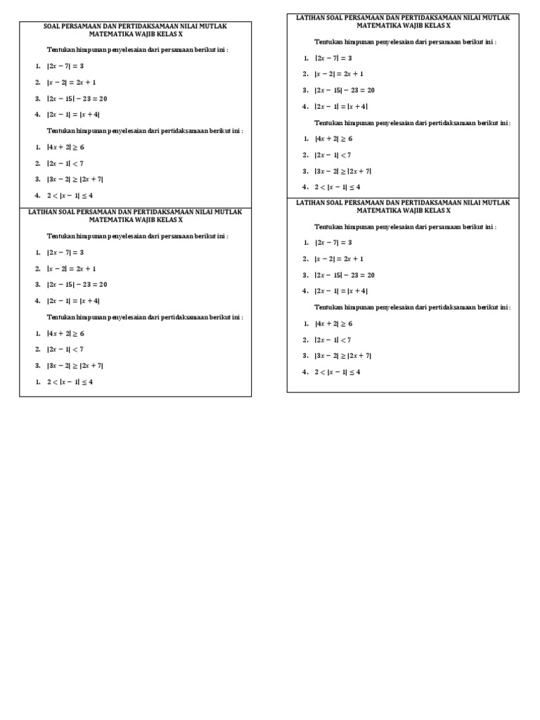 Soal Latihan Persamaan Dan Pertidaksamaan Nilai Mutlak