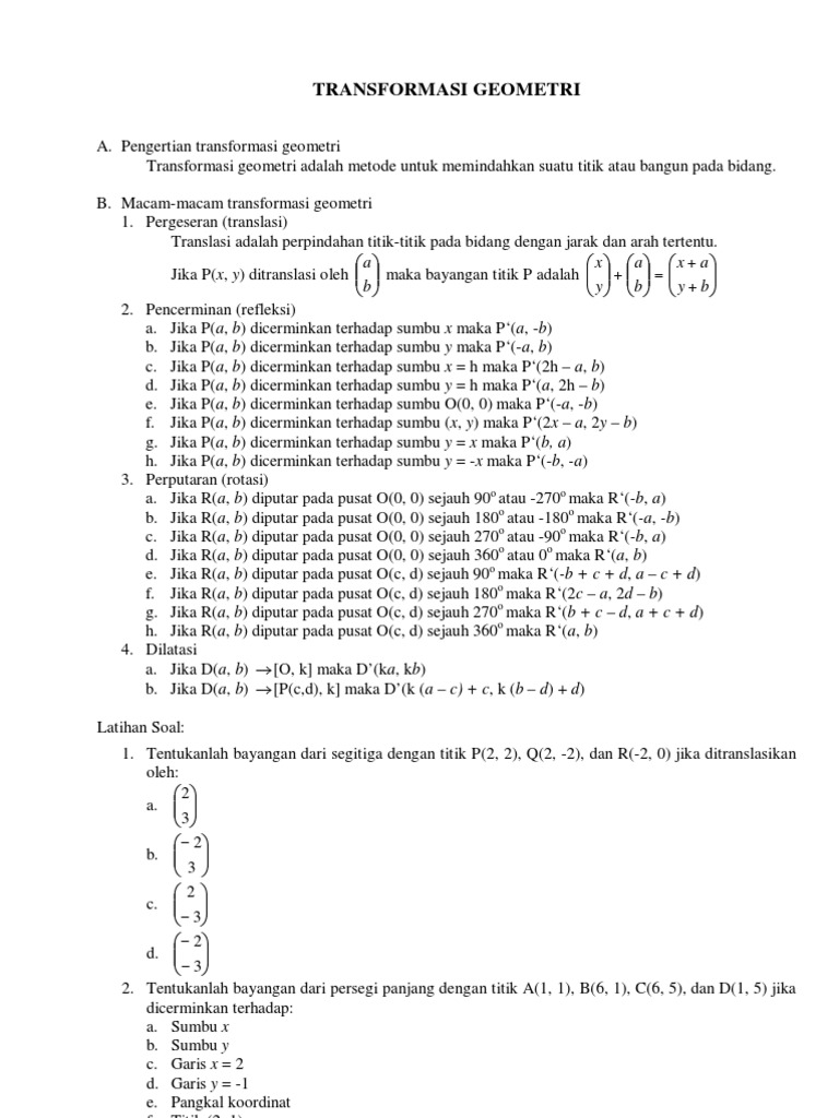 DOC) Soal Latihan Transformasi Geometri | Santhy Rodita Sidabutar - Academia.edu