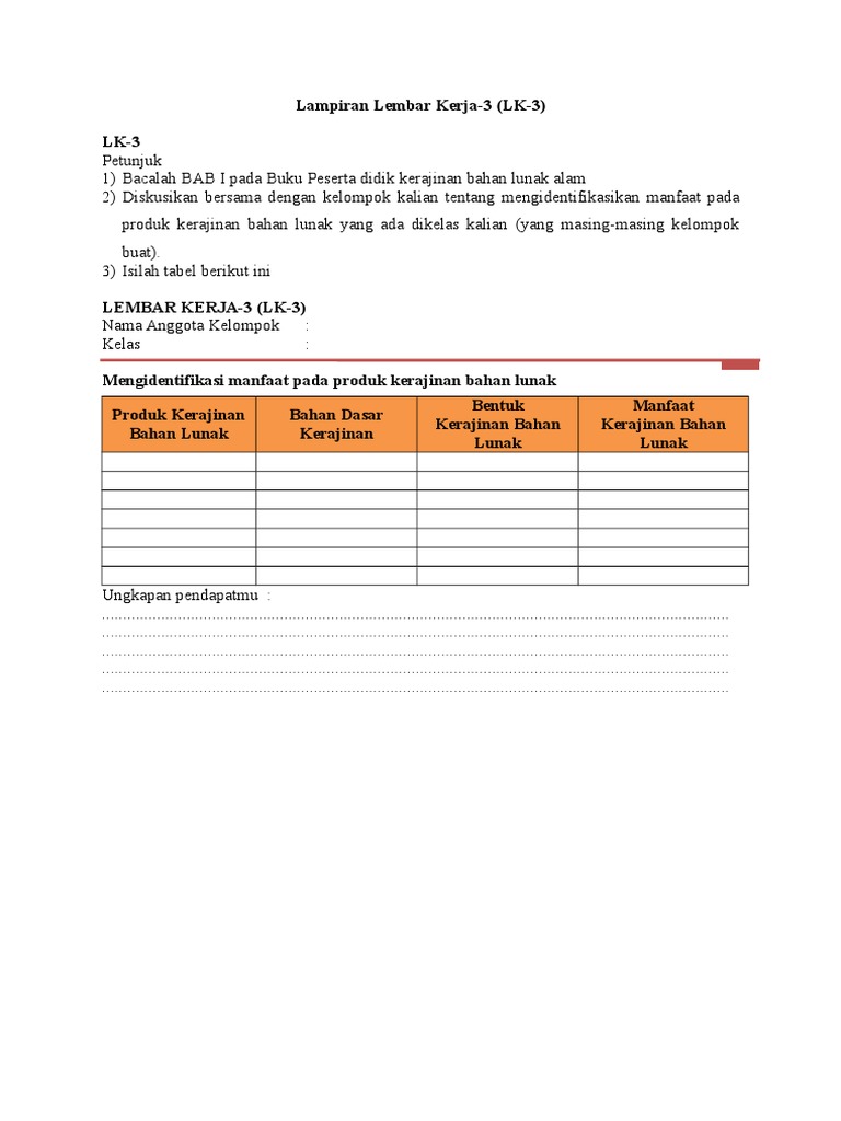 Lk 3 Prakarya Kelas 8 Semester 1 - Dunia Sekolah ID