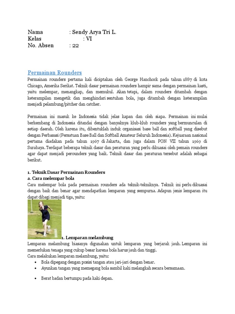 Tehnik melempar bola denagan cara rounders - Brainly.co.id