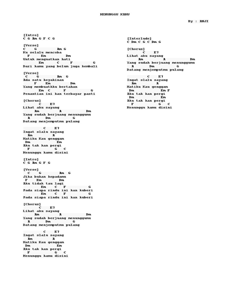 Anji - Menunggu Kamu intro : C . . G/B… - Kumpulan kunci gitar …