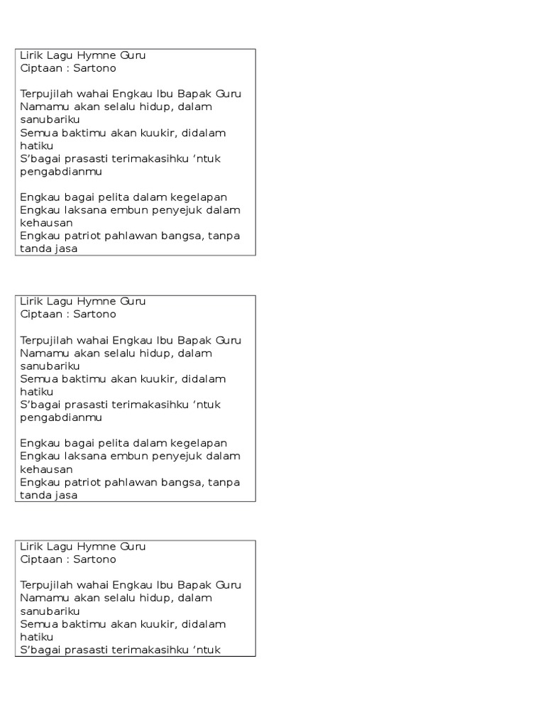 Lirik Dan Not Lagu Hymne Guru