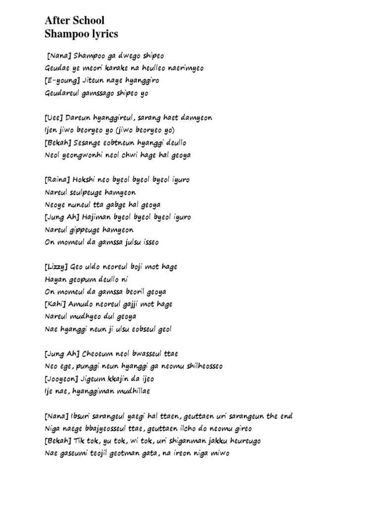 After School - Shampoo Lyrics » Color Coded Lyrics | Lyrics at CCL
