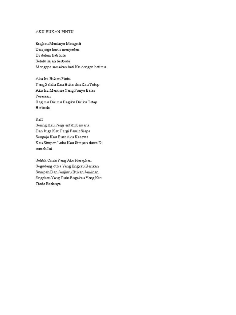 AKU BUKAN PINTU - Lyrics and Music by Loela Drakel arranged by …