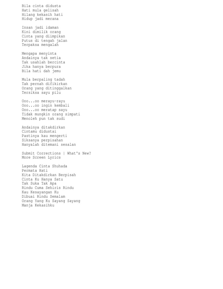 Lirik Lagu Malaysia: Screen - Bila Cinta Di Dusta