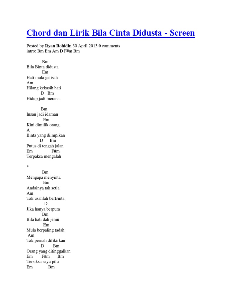 Screen - Bila Cinta Didusta Chord | Gitar Kord Melayu - Malay …