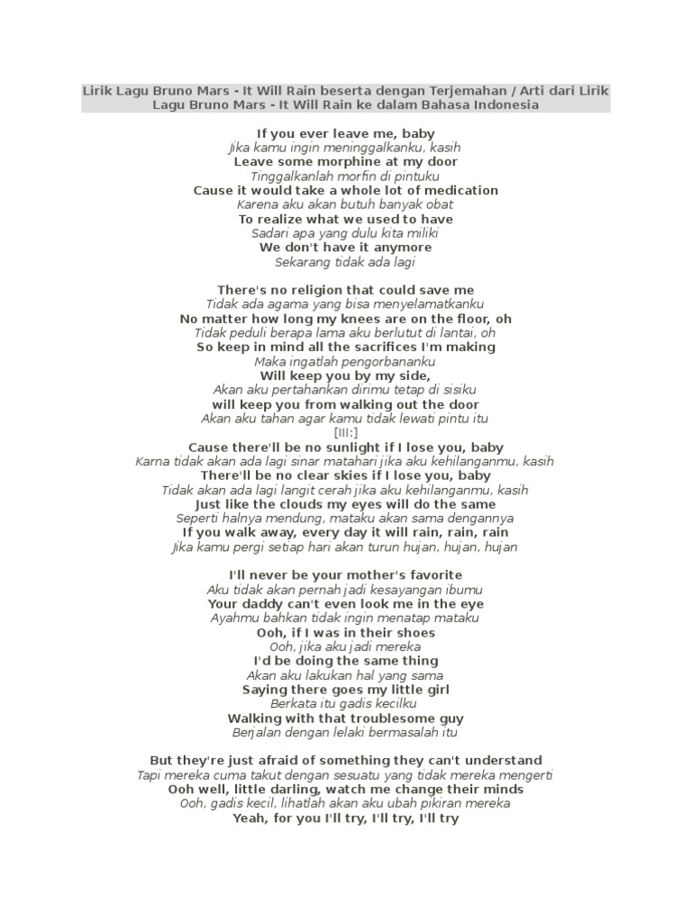 Lirik Lagu It Will Rain - Bruno Mars dan Artinya | Lirik Lagu Dunia