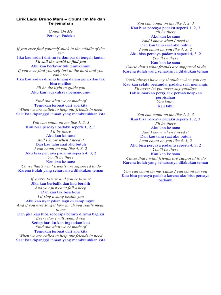 Terjemahan Dan Soal Count on Me Lagu | Musical Forms | Songs