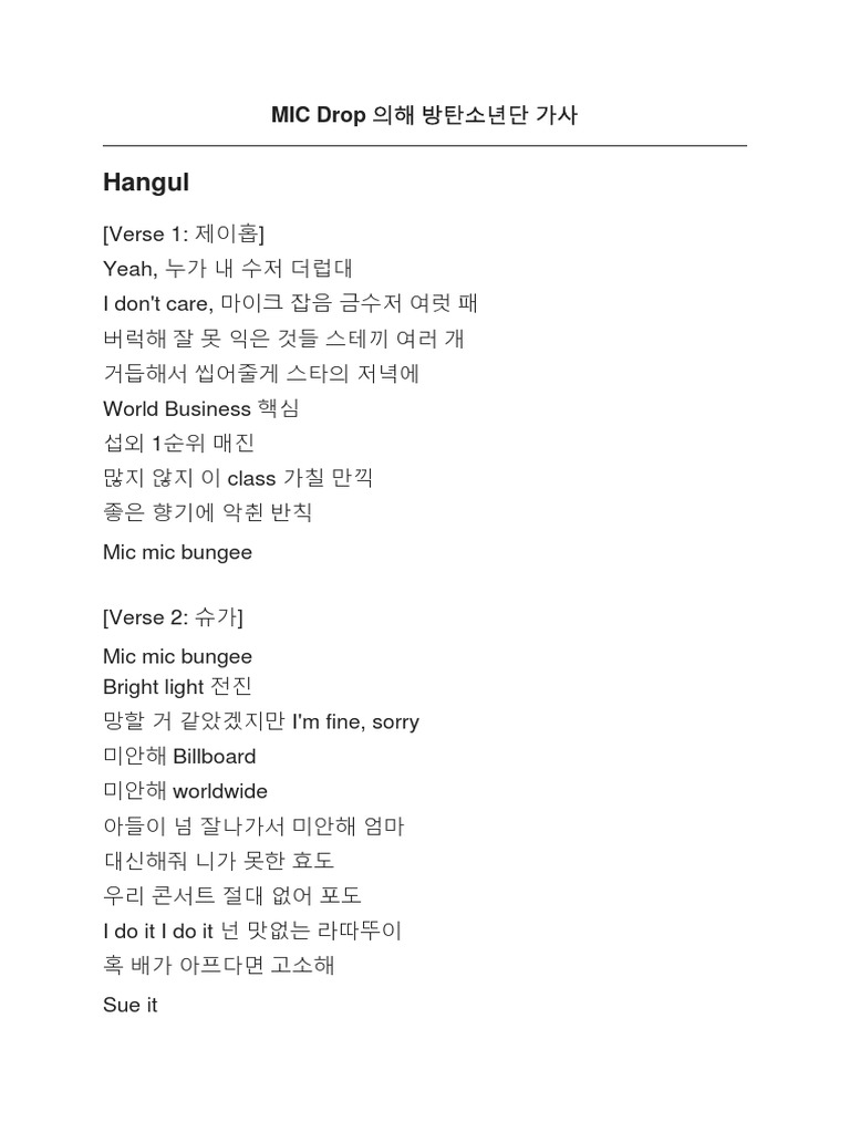 mic drop | Mic drop, Bts korea, Bts lyric