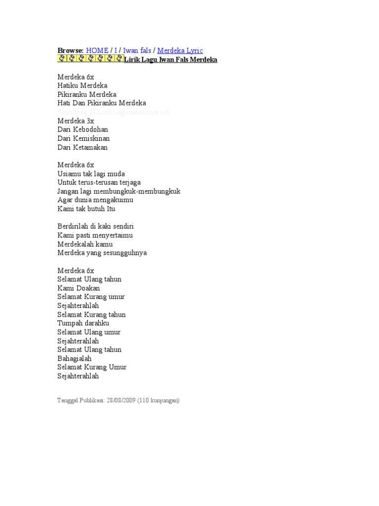 Browse:: Home I Iwan fals Merdeka Lyric
