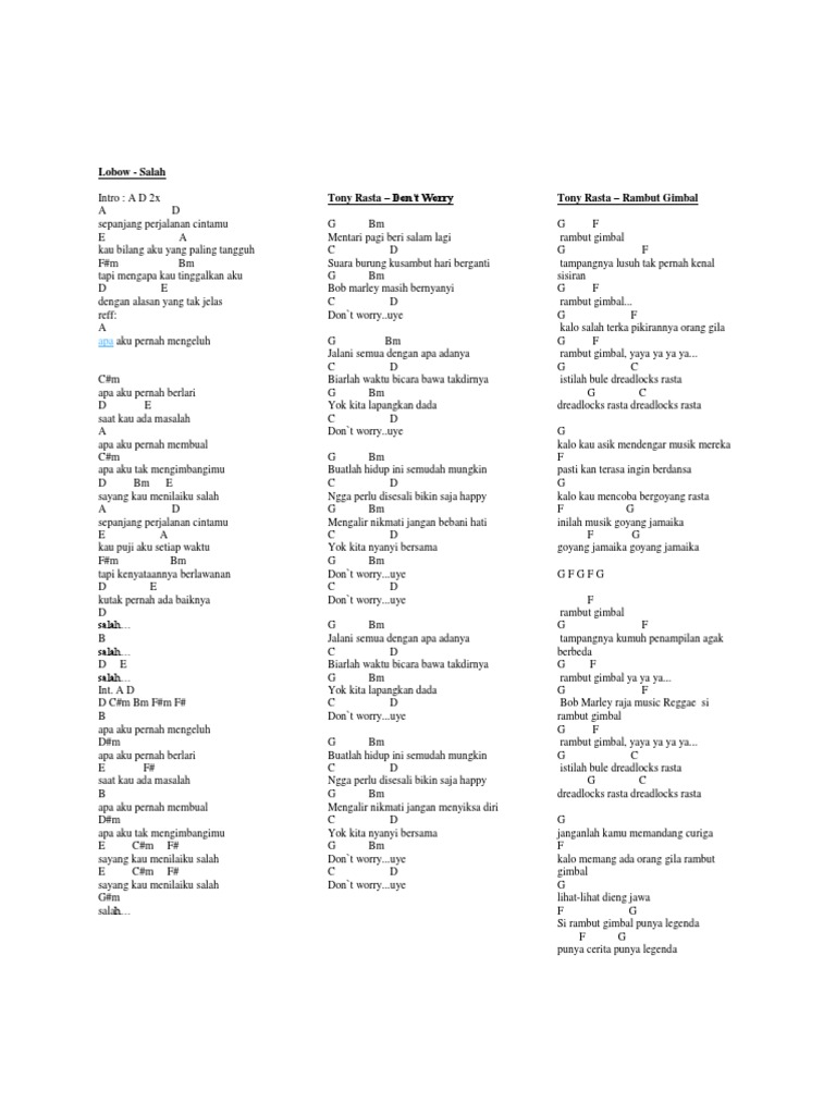 Chords for Hidup hanya sekali dan mari nikmati DON’T WORRY BE HAPPY