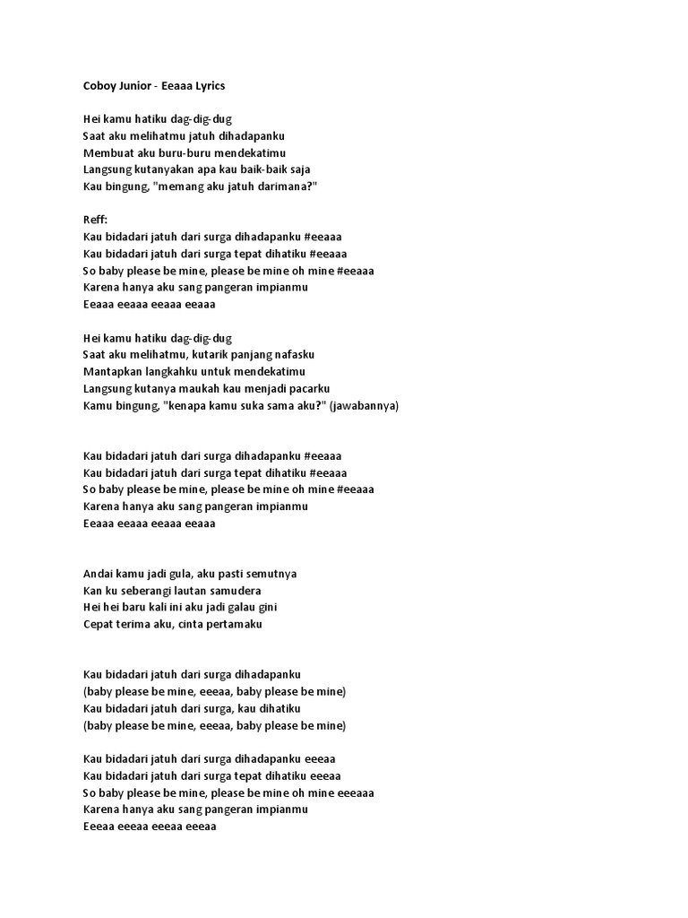 Coboy Junior Mate on Twitter: “Lirik lagu @coboyjr - Eeeaa (English Version) :-) :-D http://t.co/4Bvs2xvRQ2”