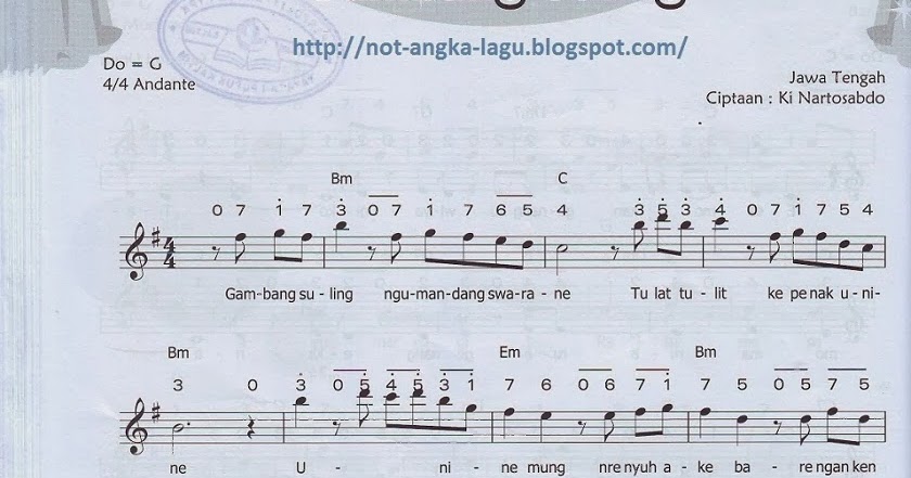 Not Angka Dan Not Balok Lagu Gambang Suling