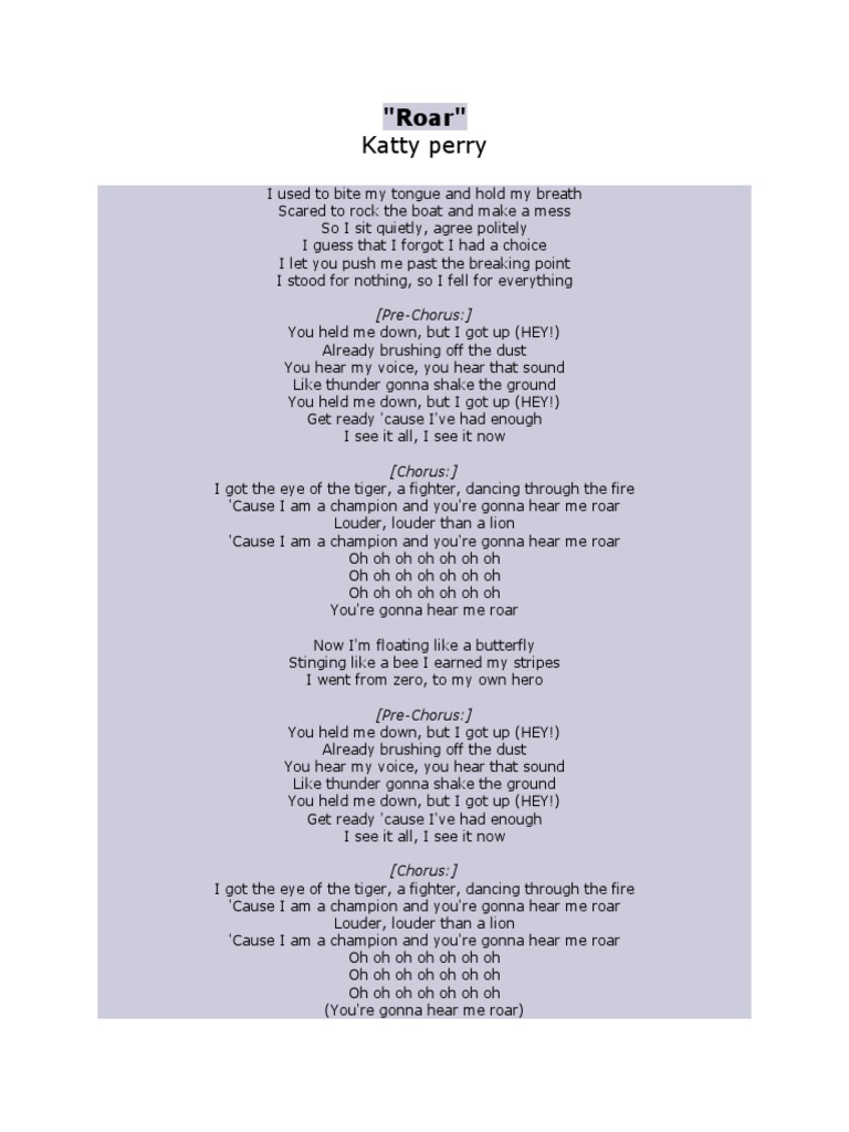 Lirik Lagu Katy Perry Roar Dan Tejemahanya - [DOCX Document]