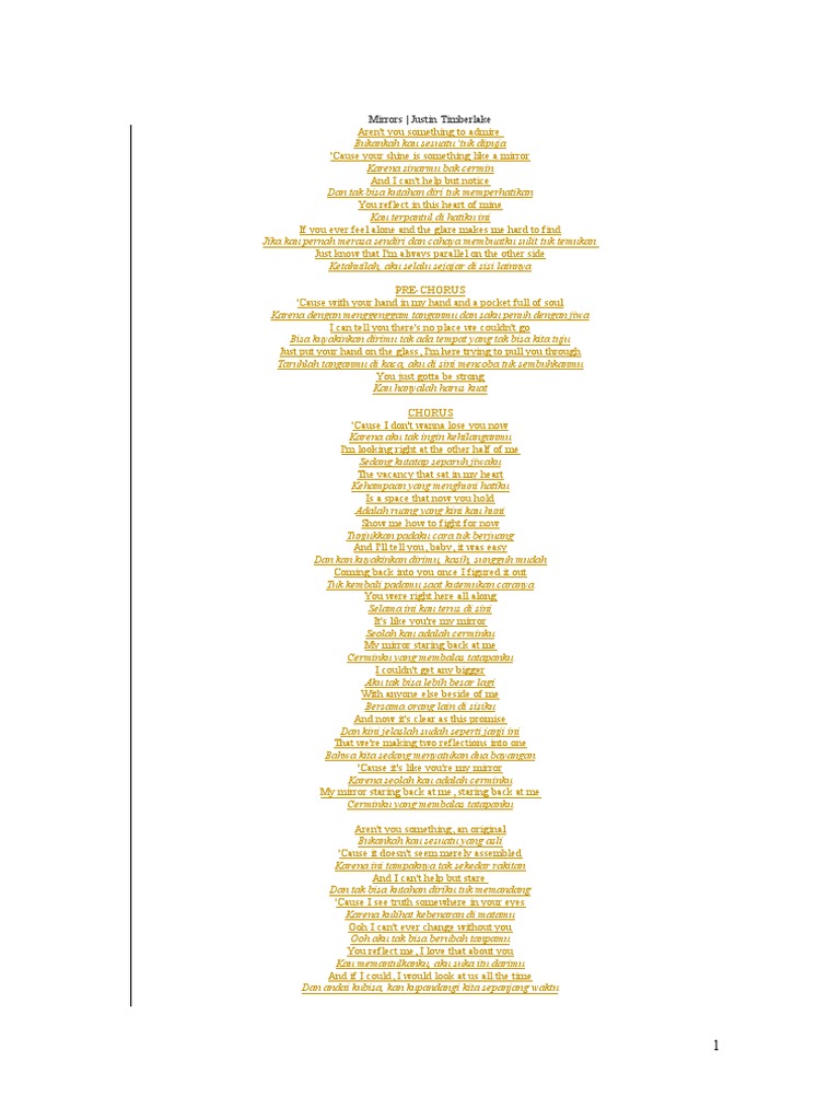 DOC) lirik lagu mirrors justin timberlake dan terjemahannya | roro laras - Academia.edu
