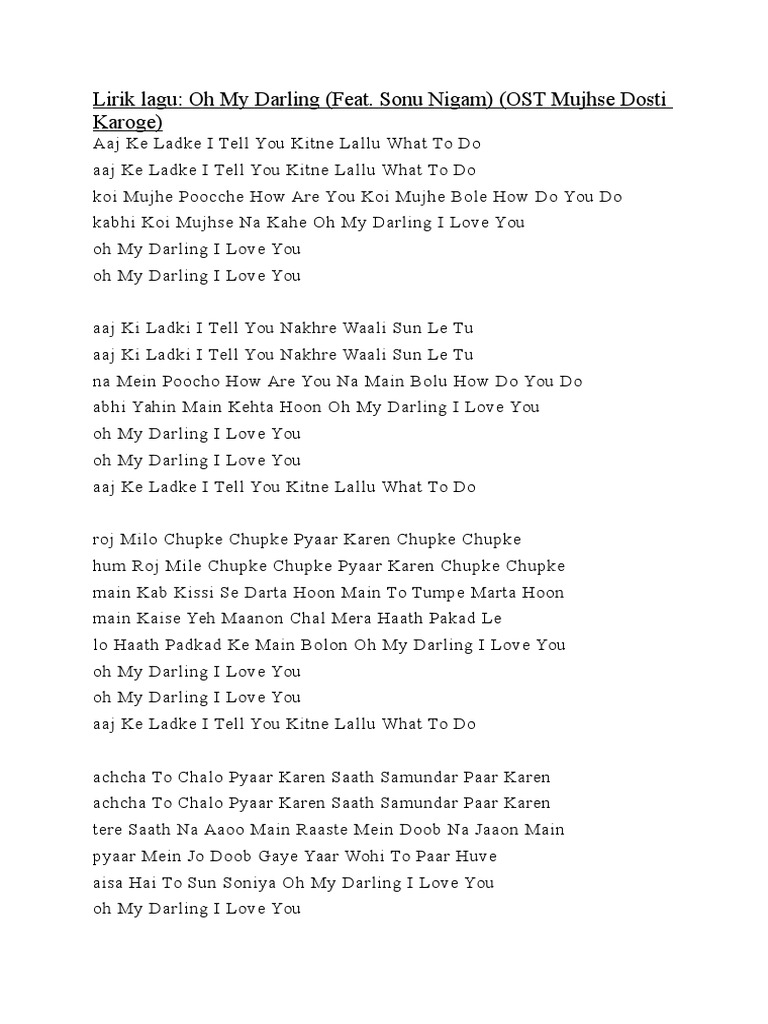 lagu asia sbk.docx - Oh My Darling I Love You Aaj Ke Ladake aaj ke …