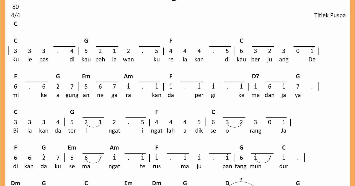 Not Angka Lagu Pantang Mundur Titiek Puspa - Kumpulan Not Lagu