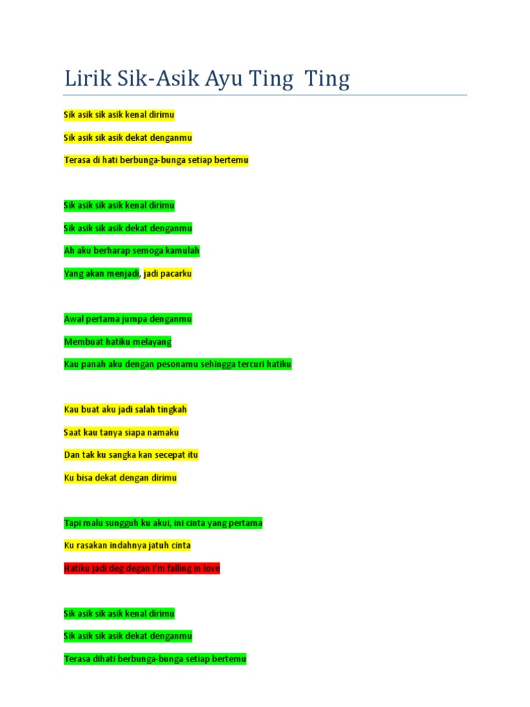 Lirik lagu sik asik ayu ting ting