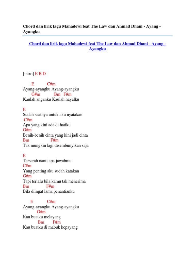 Chord Dan Lirik Lagu Mahadewi Feat the Law Dan Ahmad Dhani - Ayang - Ayangku