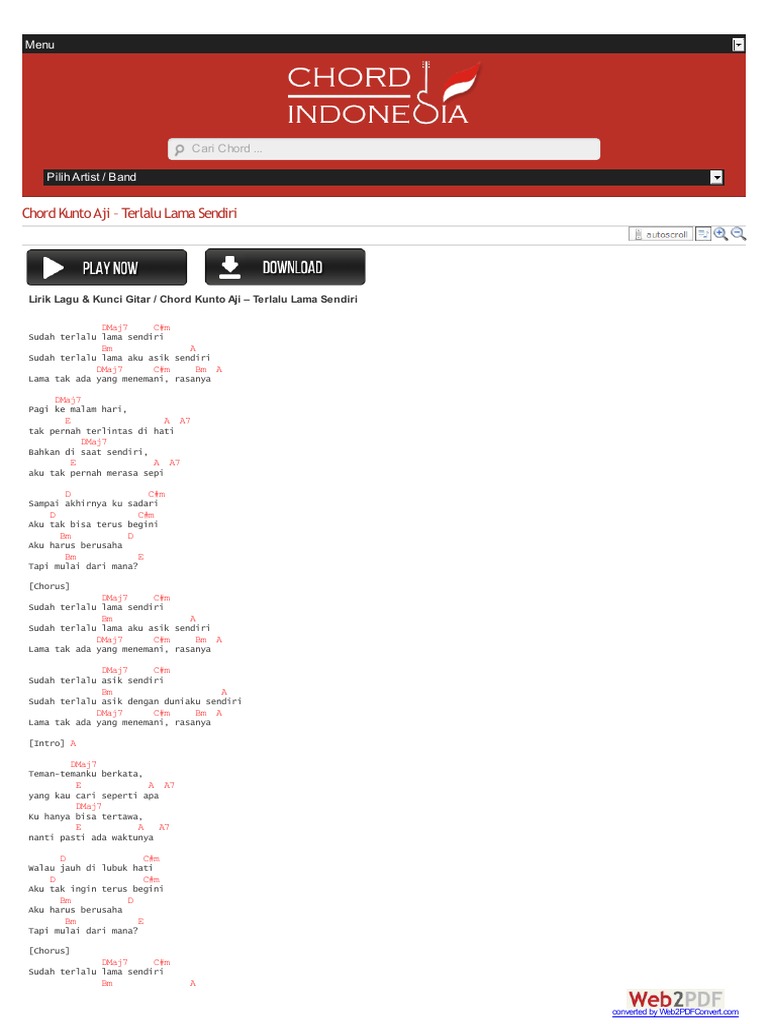 Kunto Aji Terlalu Lama Sendiri Chord - Chord Walls