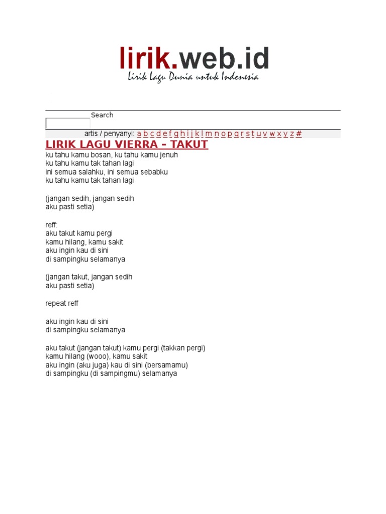 Download Lagu Vierra Takut Lirik Mp3 Gratis Terlengkap!! - UyeShare