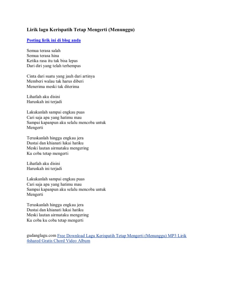 Lirik lagu Kerispatih Tetap Mengerti