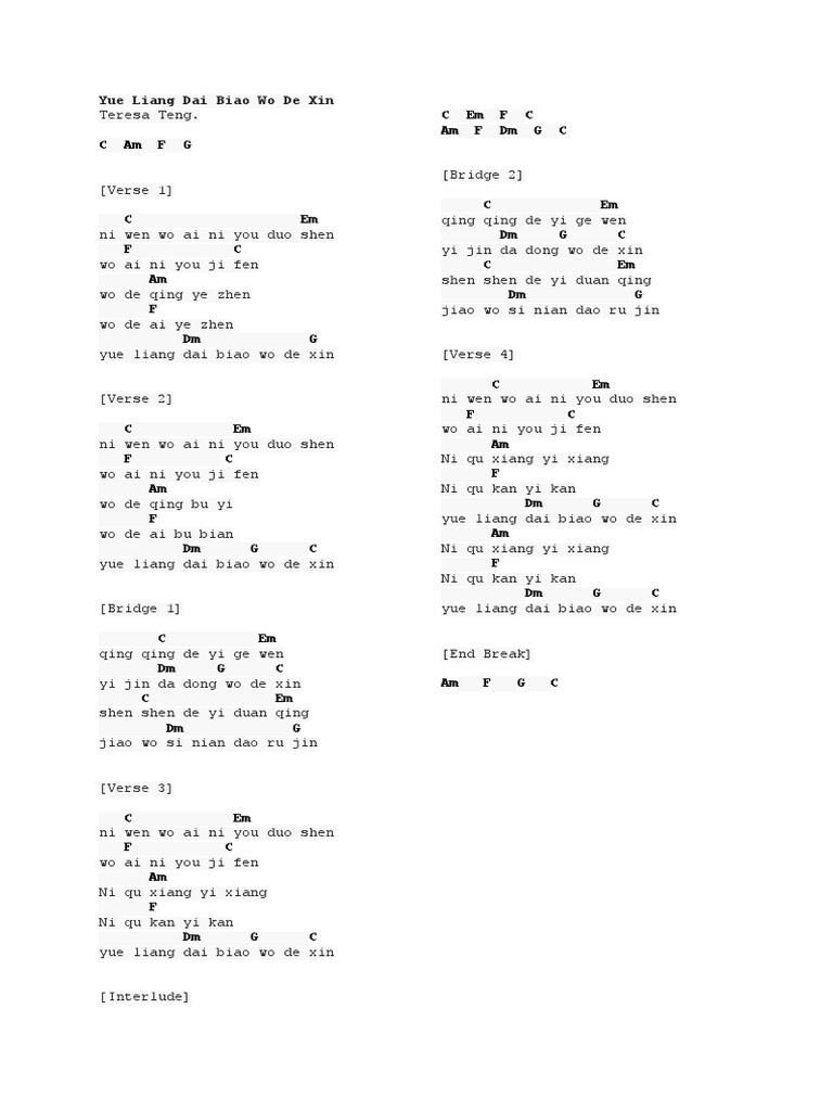 Chord Teresa Teng - Yue Liang Dai Biao Wo De Xin | Kunci Dasar …