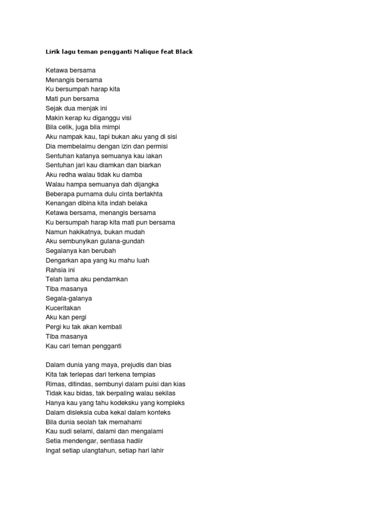 ♥Cintai Aku Seadanya♥: Lirik Lagu Teman Pengganti : Black ft Malique