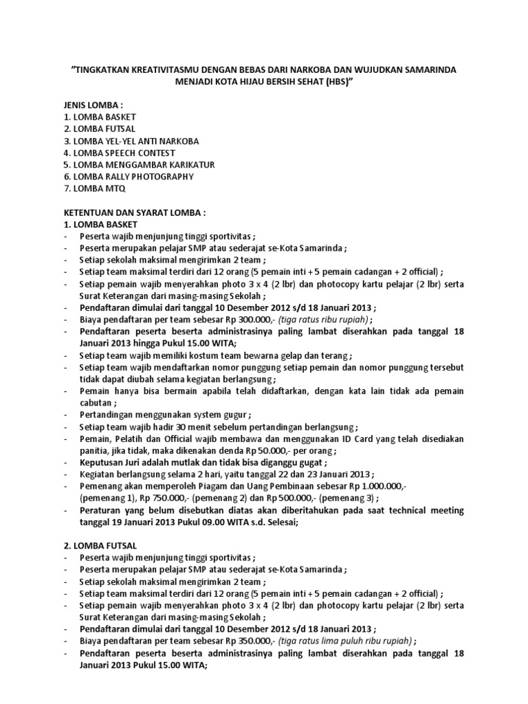 Ketentuan Lomba ULTAH SMPN 6 SAMARINDA ke-34