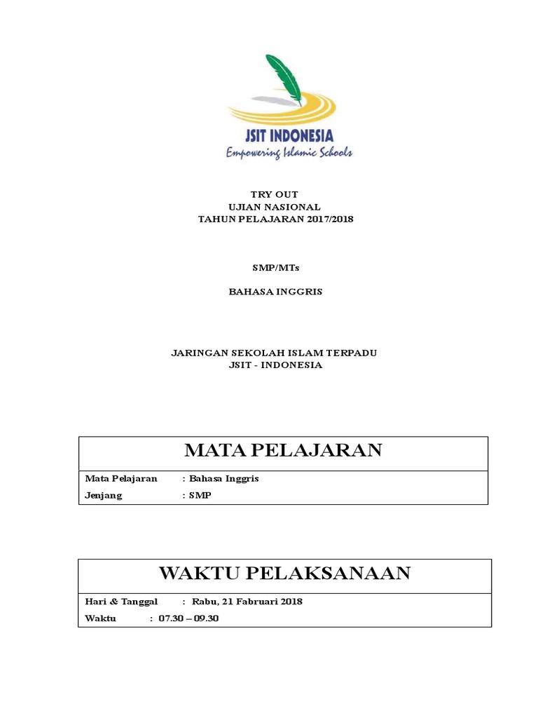 Mata Pelajaran: Try Out Ujian Nasional TAHUN PELAJARAN 2017 …