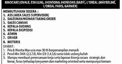 Lowongan Kerja Palembang Sales Promotion Girl PT.Niaga Nusa Abadi …
