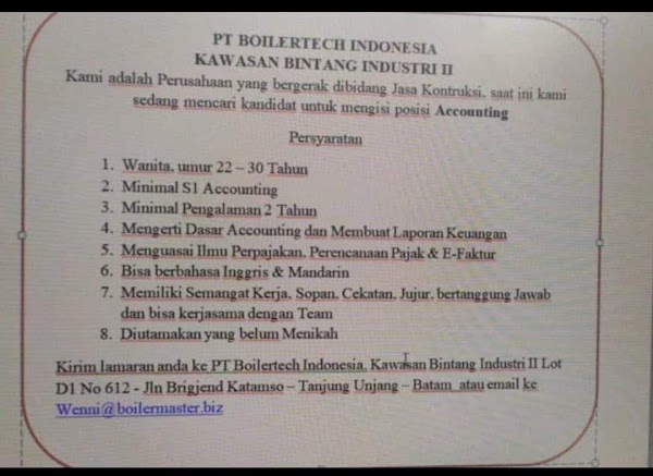 Lowongan Kerja Di Batam Pos Hari Ini - Info Seputar Kerjaan
