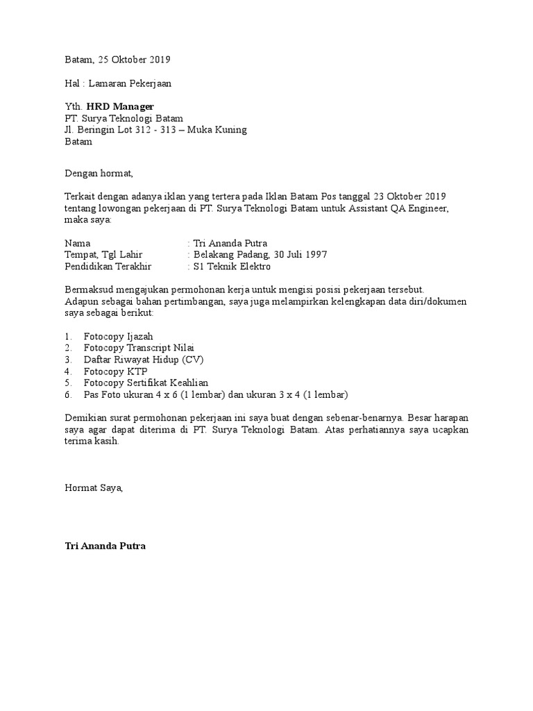 59 Contoh Surat Lamaran Kerja Di Pt Philips Batam