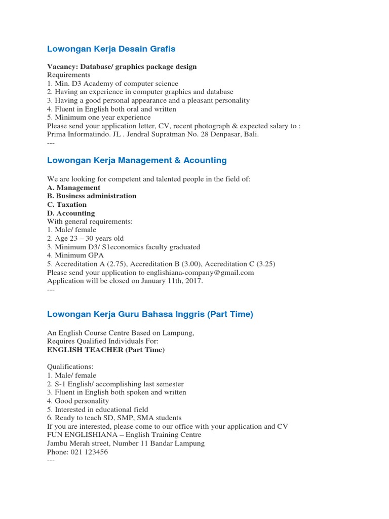 Contoh Lowongan Pekerjaan Dalam Bahasa Inggris - ben jobs | Bahasa …