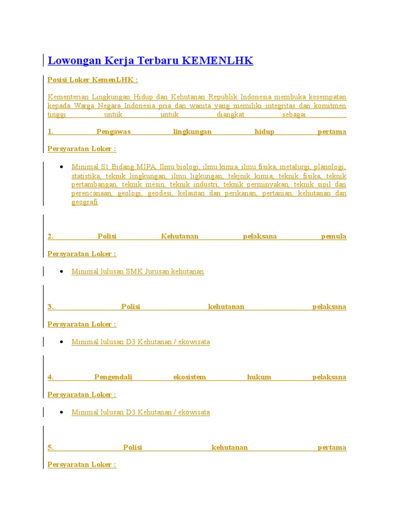 Lowongan Kerja Terbaru KEMENLHK