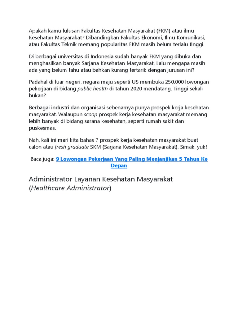 Peluang Kerja Lulusan Fakultas Kesehatan Masyarakat | A Lifelong …