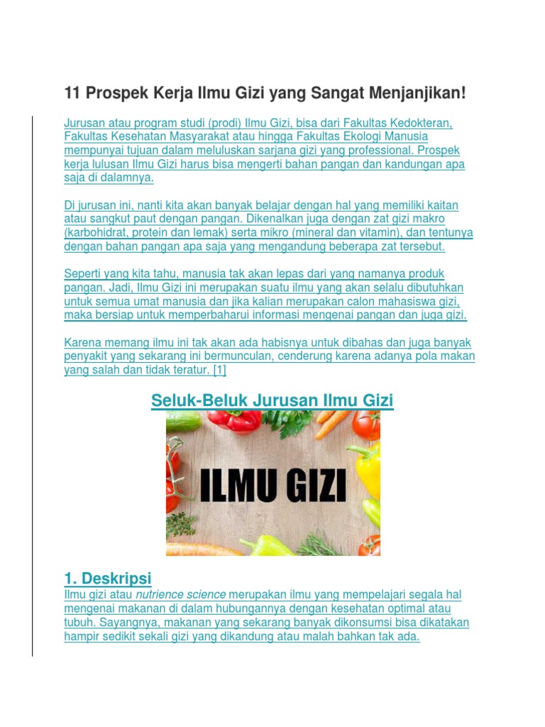 13 Prospek Kerja Ilmu Gizi yang Sangat Menjanjikan! - Habibullah …