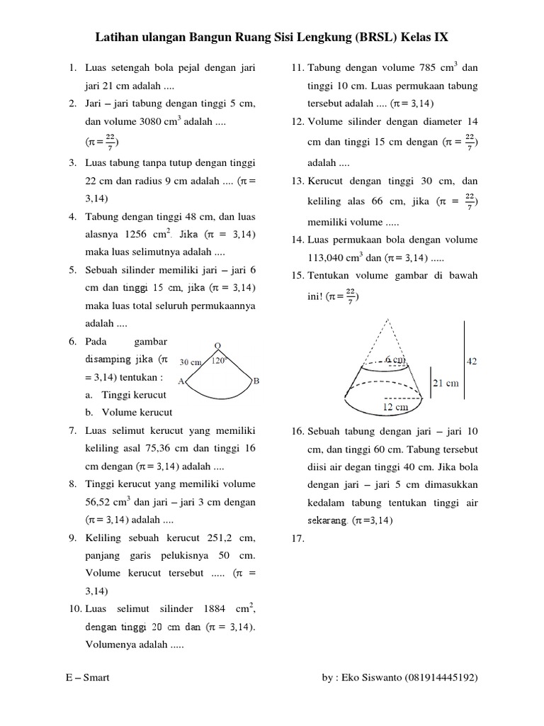 KD 2,1 MENGIDENTIFIKASI UNSUR-UNSUR TABUNG, KERUCUT DAN BOLA …