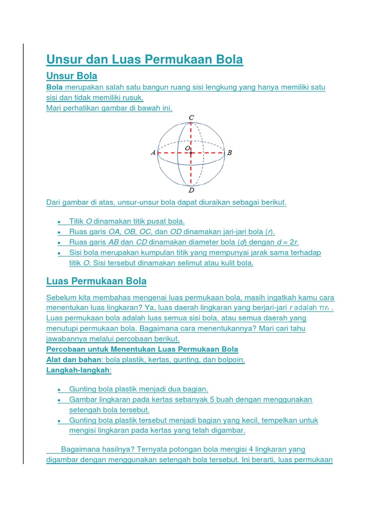 BANGUN RUANG SISI LENGKUNG BOLA ( LUAS PERMUKAAN DAN VOLUME BOLA …