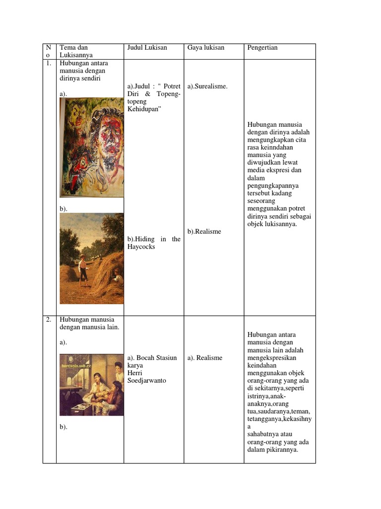 Tema Dan Lukisannya Hubungan Antara Manusia Dengan Manusia Lain Judul Lukisan Gaya Lukisan
